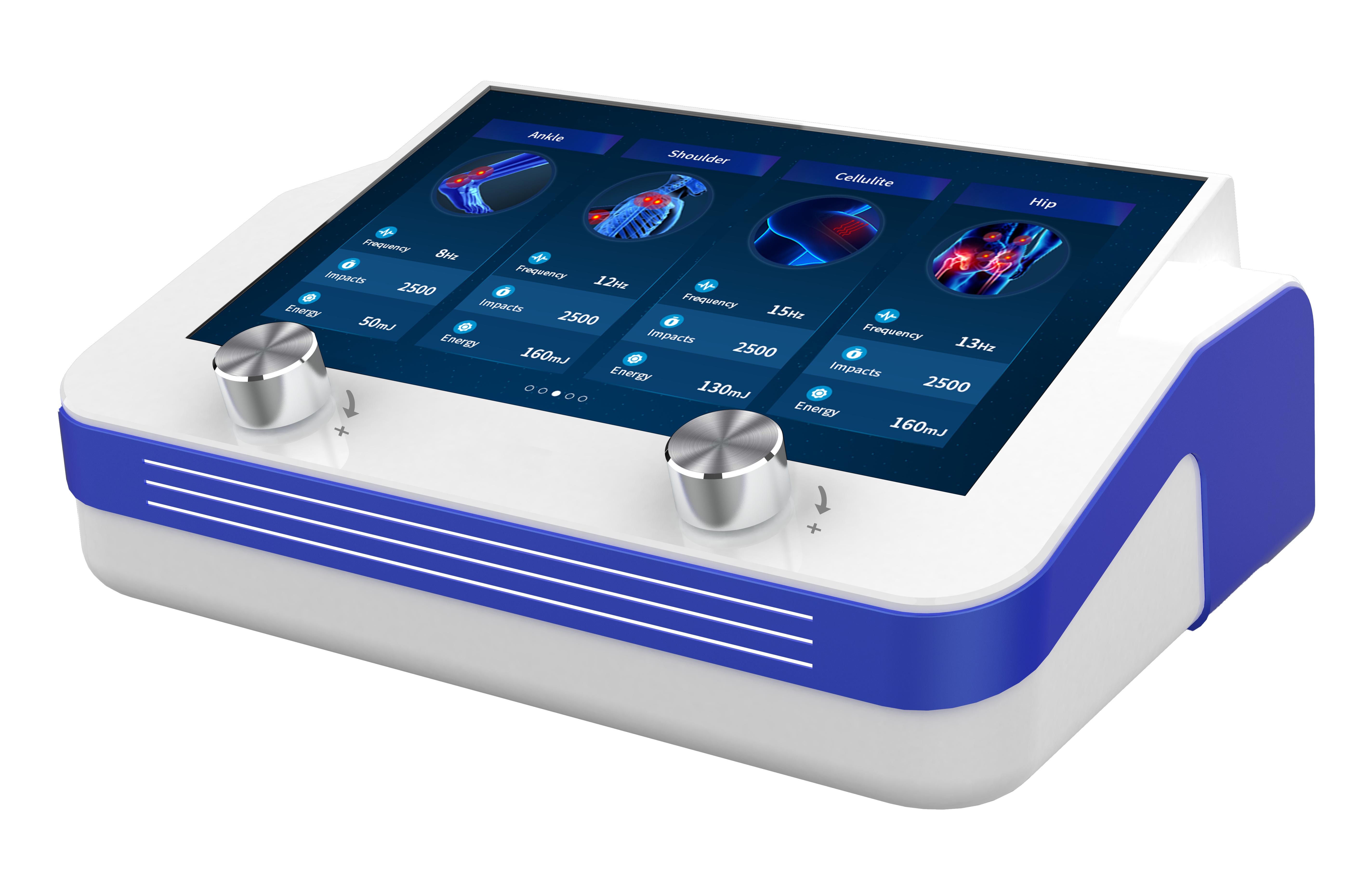 The MEDRAY MEDWAVE SOFTSHOCK offers the versatility of presets for all major areas of treatment as well as the ability to edit these parameters through the touch screen control panel. This saves time and allows for fast operation.